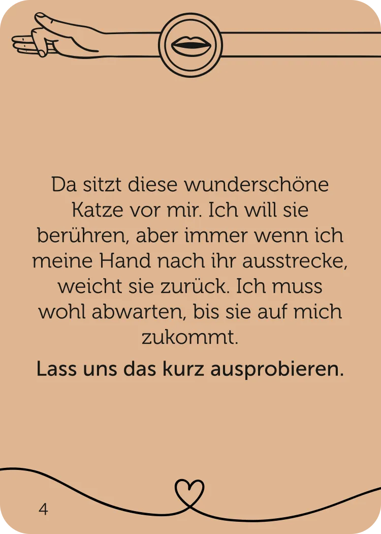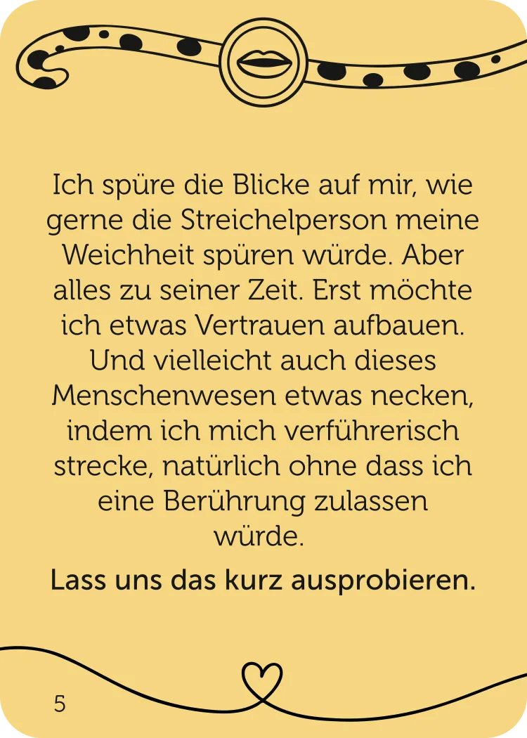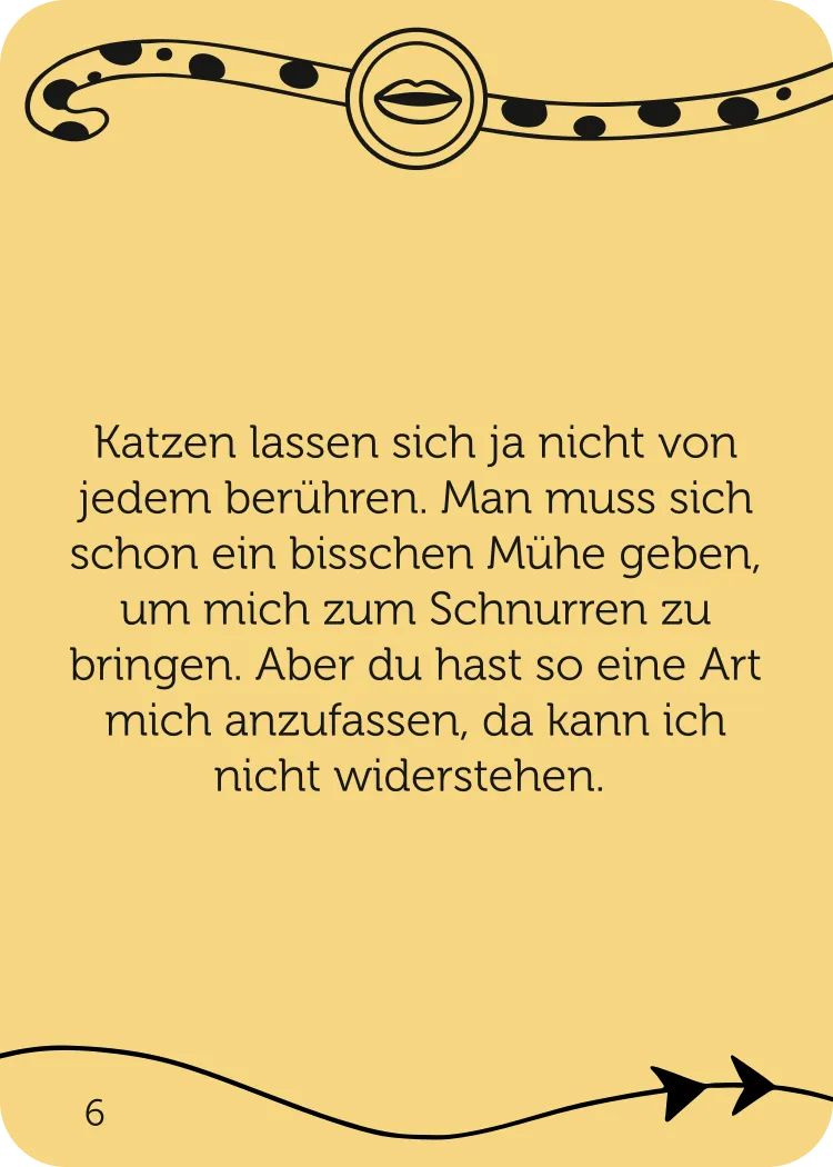 Die Karte der Streichelperson ist die eigentliche Nr. 8, die Karte der Katze mit folgendem Text ist eigentlich Nr. 9: