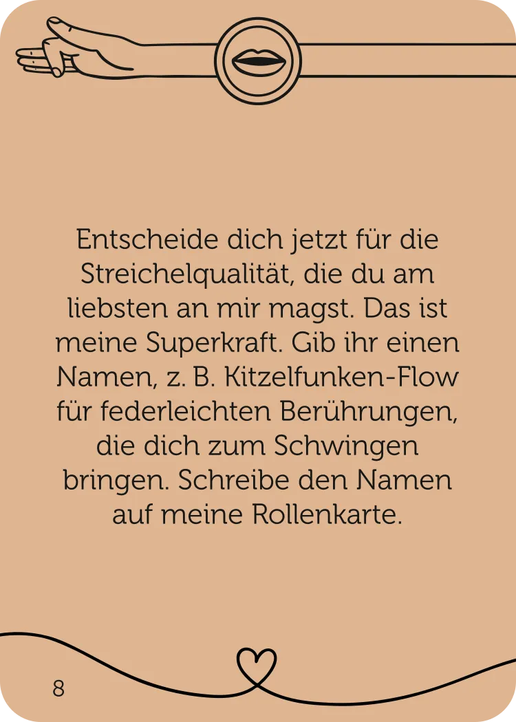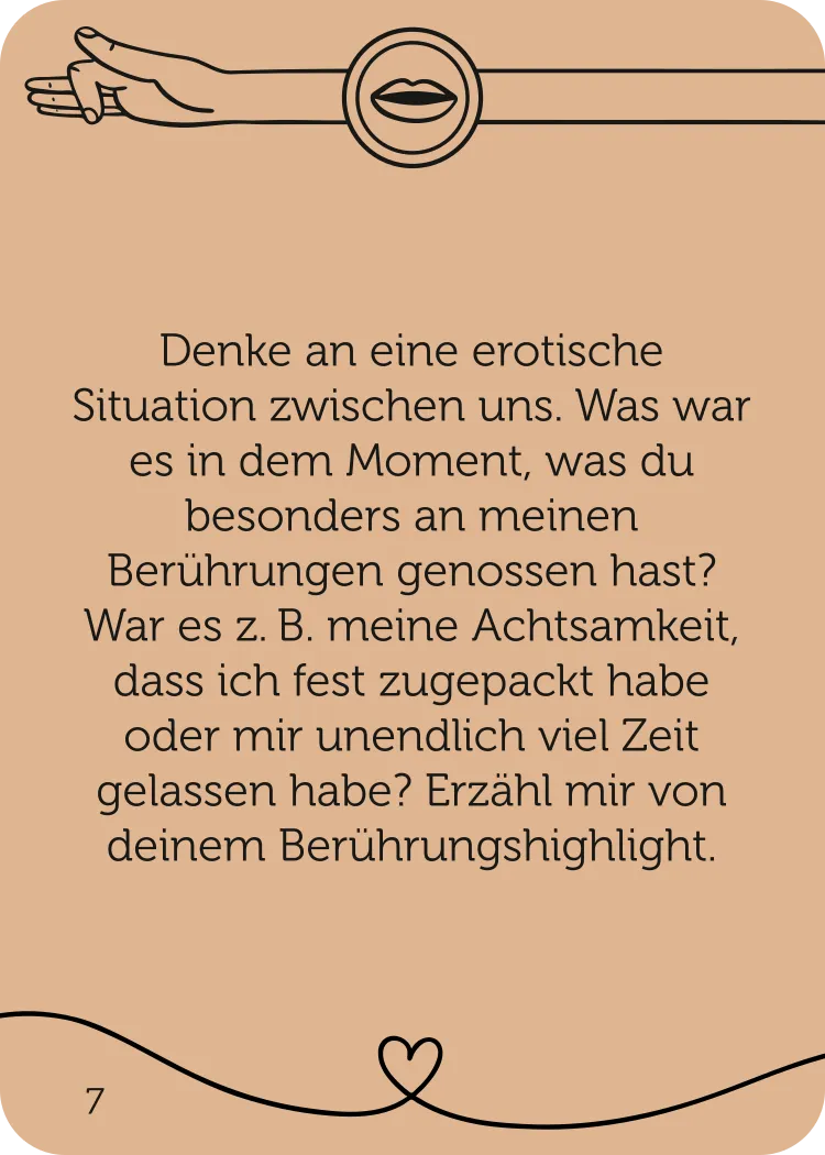 In 9 Kapiteln erforscht ihr mit Fragen und Berührungsimpulsen eure ganz eigene sexuelle Dynamik – mal wild, mal zart, mal überraschend tief.